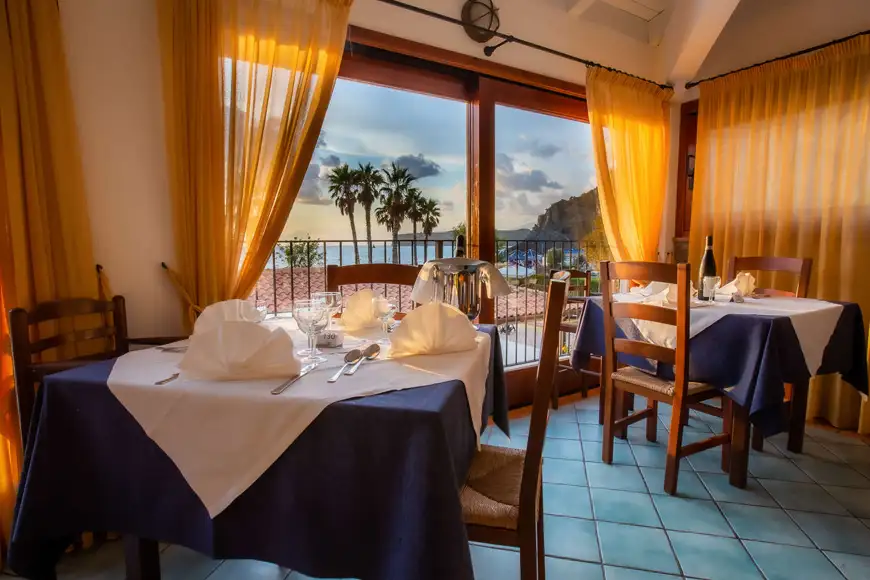 Il trattamento previsto è generalmente di pensione completa, con colazione, pranzo e cena serviti nel ristorante del villaggio. Il menu propone una buona varietà di piatti, con particolare attenzione alle ricette di mare e alla gastronomia tipica del territorio.