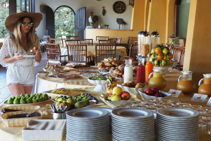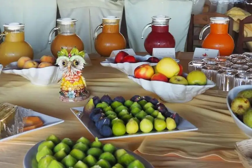 La cucina valorizza la tradizione gastronomica locale, con piatti preparati utilizzando anche prodotti coltivati direttamente all’interno della fattoria della struttura. Il trattamento previsto è di Pensione Completa, con acqua, vino e succhi inclusi ai pasti.